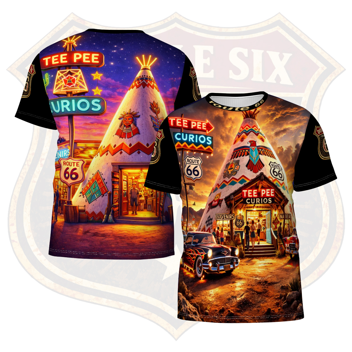 We create store-specific and location-driven designs for select Route 66 partners. Projects like this custom Tee Pee Curios are officially licensed and built to reflect the identity of their location and business. Tee Pee Curios has exclisivity for this shirt. Drop us a message and let us show you what we can do, for you.